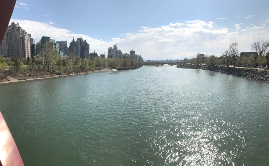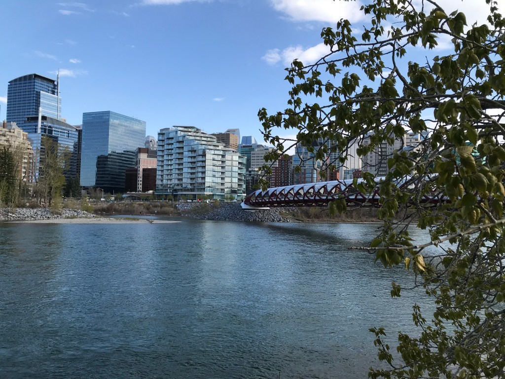The big red structure really is beautiful as it hovers over the turquoise waters of the Bow River and the shiny city skyline is so lovely as it looms in the background.
